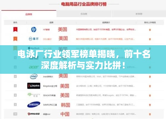 电泳行业作为现代工业领域的重要组成部分,其技术进步和产业升级日新月异,本文将为您详细介绍电泳厂排名前十名的企业,这些企业在行业内凭借其卓越的产品质量、创新的技术研发实力以及良好的市场口碑脱颖而出。
