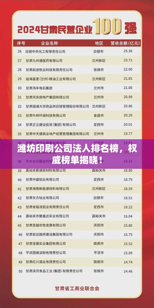 随着社会的快速发展和信息时代的到来,印刷行业作为文化产业的重要组成部分,也在不断发展壮大,潍坊地区作为山东省的重要经济区域,拥有众多的印刷公司,这些公司在市场竞争中各显神通,逐渐形成了自己的特色和优势,本文将围绕“潍坊印刷公司法人排名”这一主题,介绍潍坊地区印刷公司的基本情况、发展状况以及法人排名。