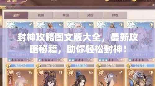 通过本文的封神最新攻略图文版大全,希望能为广大玩家提供有价值的信息和帮助,在游戏中,不断学习和探索新的攻略和技巧是非常重要的,祝愿大家在封神世界中畅游无阻,成为顶尖玩家!