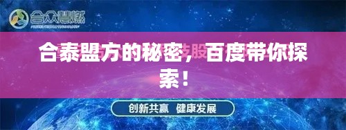 通过百度搜索,我们可以更好地了解合泰盟方,探索其与百度的合作前景,在未来,我们期待看到更多关于合泰盟方的信息,以及其与百度共同创造的更多价值。