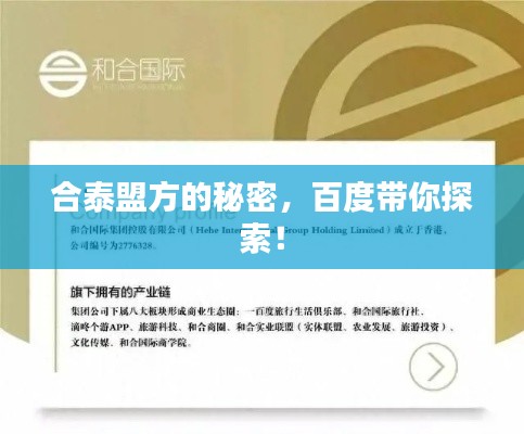 为了更深入地了解“合泰盟方”,我们通过百度搜索来获取相关信息,合泰盟方可能涉及多个领域,包括但不限于商业、科技、文化等,它是一个注重合作、共享的组织,致力于推动各领域的交流与合作,为社会创造更多价值。