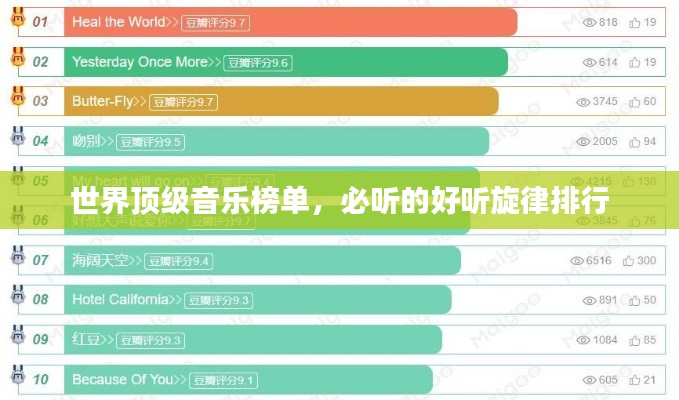 音乐是一种跨越国界、沟通人心的艺术形式,在世界音乐宝库中,有许多令人陶醉的旋律,它们如同璀璨的星辰,照亮我们的心灵,本文将为您呈现好听的世界顶级音乐排名,带您领略音乐的魅力。