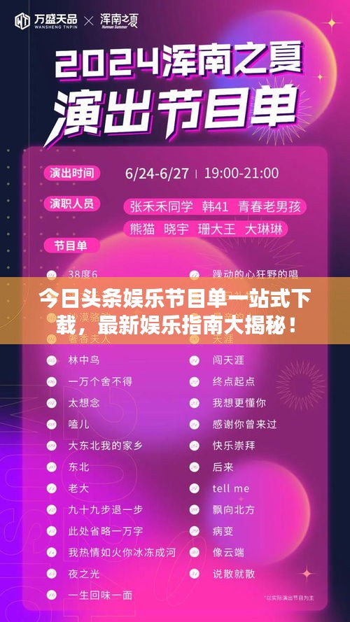通过今日头条,你可以轻松获取最新的节目单,掌握各类娱乐节目的动态,下载节目单的过程简单便捷,让你轻松享受娱乐生活,请注意确保链接的安全性和尊重版权问题,希望这篇文章能为你带来帮助,让你在娱乐的道路上越走越远。