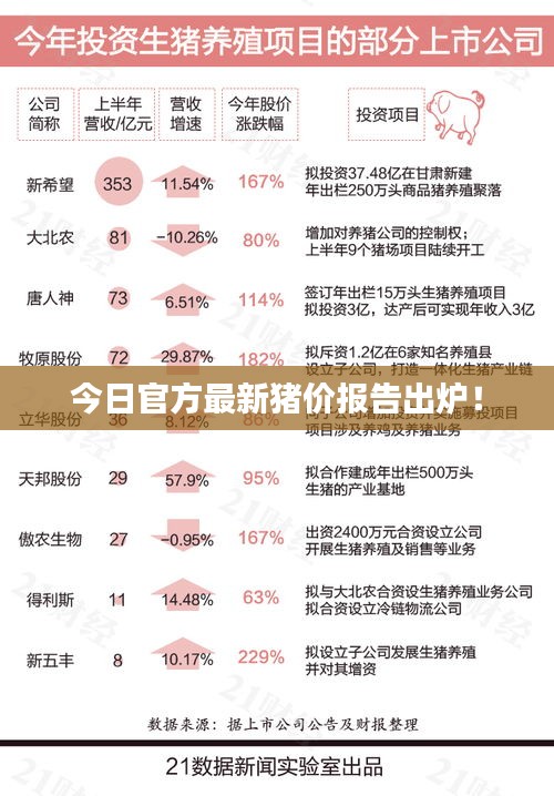 随着生活水平的提高,猪肉已成为我们日常生活中不可或缺的重要食材之一,猪价的波动也备受广大民众的关注,本文将结合今日猪价最新官网数据,对当前的猪价形势进行分析和探讨。