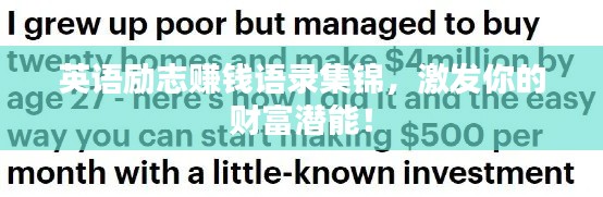 赚钱不仅是一种能力,更是一种态度,以下是一些关于英语的励志赚钱语录,希望能激励你在追求财富的道路上不断前行。