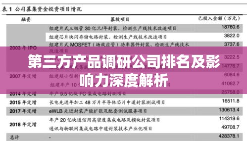 随着市场竞争的日益激烈,产品调研的重要性愈发凸显,第三方公司在此领域扮演着至关重要的角色,它们以其独立性、专业性和客观性,为消费者和企业提供了准确的市场信息,本文将探讨产品调研第三方公司的排名及其影响力。