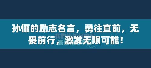 这些名言体现了孙俪的奋斗精神和励志理念,激励我们在人生的道路上勇往直前,无畏前行。