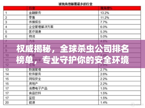 随着人们对居家环境和生活品质要求的提高,害虫问题逐渐成为人们关注的焦点,杀虫公司行业逐渐兴起,为消费者提供全方位的害虫防治服务,本文将介绍当前市场上的杀虫公司排名,以帮助消费者更好地了解并选择优质的服务。