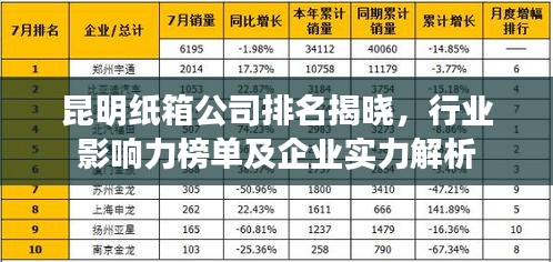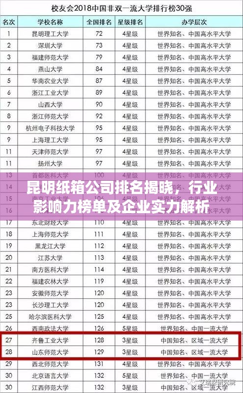 昆明,作为云南省的省会城市,近年来经济发展迅速,各类产业蓬勃发展,其中纸箱行业亦取得了显著的成绩,随着需求的增长,昆明纸箱公司的数量和质量也在不断提升,本文将探讨昆明纸箱公司的排名及其行业影响力。