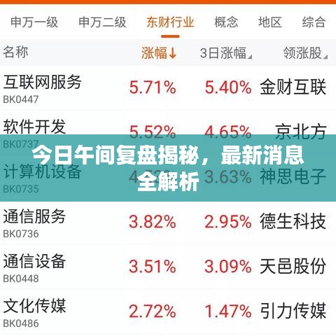 随着市场的不断变化,投资者对于最新消息的需求越来越强烈,本文将围绕“今日午间复盘最新消息”这一主题,为您梳理并分析市场动态、行业走势以及投资机会。