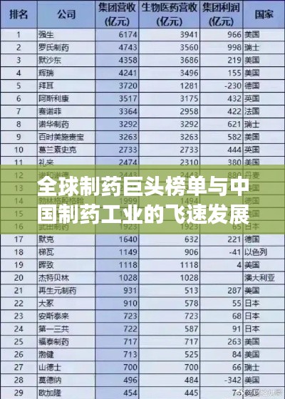 随着全球医药市场的不断扩大,各国制药公司的实力和影响力日益增强,中国制药工业在近年来也取得了显著进步,逐渐在全球舞台上崭露头角,本文将根据最新数据,探讨世界制药公司排名中的中国制药企业,并分析其在国内及国际市场的表现。