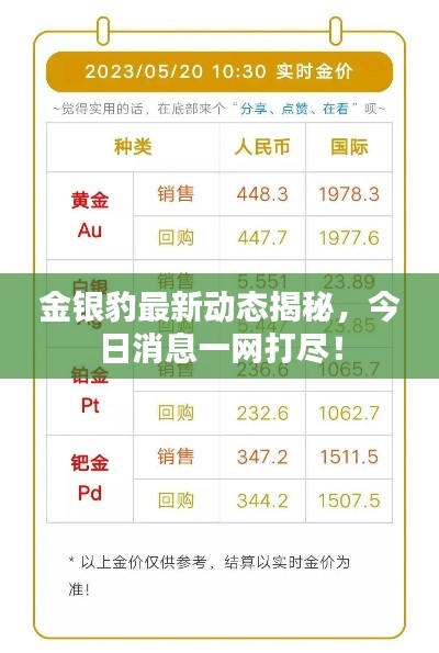 随着全球经济的不断发展和金融市场的日益繁荣,人们对于贵金属的投资热情持续高涨,作为贵金属中的佼佼者,金银豹(金银豹泛指金银等贵金属的投资市场)的动态一直备受关注,本文将为大家带来今日金银豹的最新消息,以便大家更好地了解市场动态,把握投资机会。