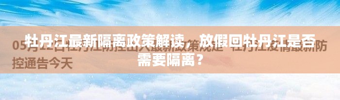 随着疫情逐渐得到控制,各地纷纷调整防疫措施,逐渐恢复了正常的生活秩序,对于即将放假准备回牡丹江的人们来说,是否需要隔离成为了一个关注的焦点问题,本文将结合最新消息,对这一问题进行解答。