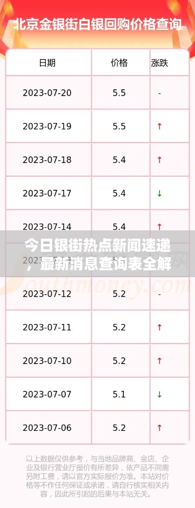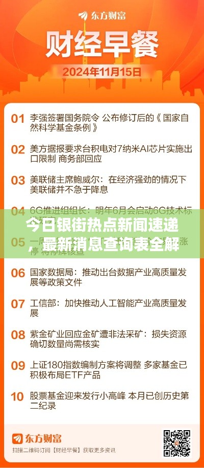 银街作为金融市场的焦点之一,其最新动态备受关注,本文将围绕“今日银街最新消息查询表”这一主题展开,为读者提供最新的银街消息、数据及相关分析。