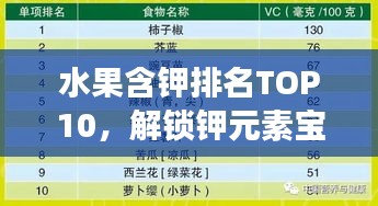在追求健康饮食的道路上,我们不仅要注重食物的口感和营养,更要关注其中的矿物质含量,钾,作为一种重要的矿物质,对于维持人体正常的生理功能起着至关重要的作用,而水果作为我们日常饮食中的重要组成部分,其中含有丰富的钾元素,我们将为您介绍水果中含钾排名前十名的品种,帮助您更好地选择健康饮食。