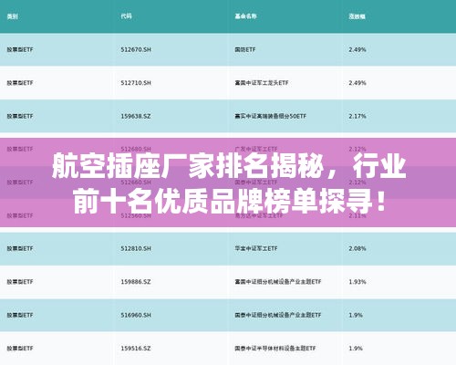 随着航空技术的不断进步,航空插座作为关键电气连接组件,其市场需求日益旺盛,本文将为您揭晓航空插座厂家排名前十名,带您了解这些行业佼佼者的发展历程、产品特点以及市场影响力。