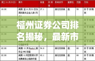 随着金融市场的不断发展和壮大,证券公司作为资本市场的重要一环,日益受到社会各界的关注,福州作为福建省的省会城市,其证券市场发展尤为活跃,本文将探讨福州证券公司的排名及其市场状况,以便为投资者提供参考。