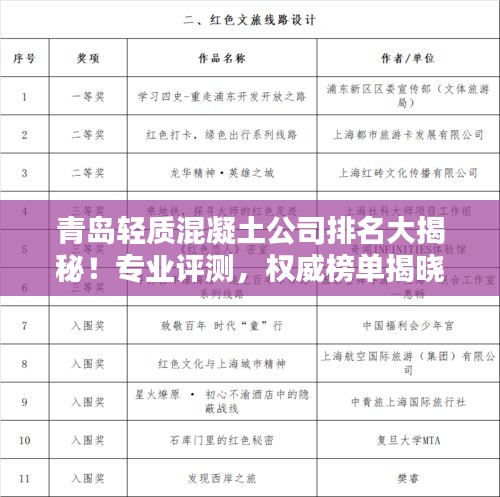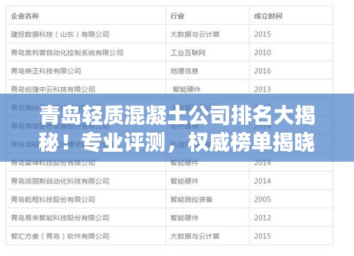 混凝土是建筑领域不可或缺的材料,随着建筑行业的快速发展,轻质混凝土因其良好的性能被广泛应用,青岛作为中国的海滨城市,其建筑行业蓬勃发展,轻质混凝土公司众多,本文将为您介绍青岛轻质混凝土公司的排名。
