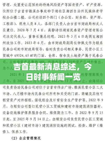 吉首,这座美丽的城市时刻都在发展变化,每天都有新的消息和新闻涌现,本文将围绕“吉首今日新闻最新消息”这一主题,为您梳理并解读吉首市最新的动态和发展趋势。