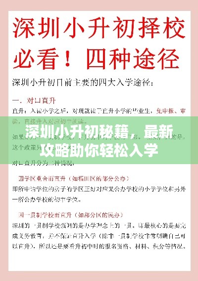 随着深圳市教育环境的不断变化,小升初的形势也在不断地调整,家长们对于孩子升学的关注度日益提高,为了帮助家长们更好地了解深圳小升初的最新动态,本文为大家带来深圳小升初最新攻略。