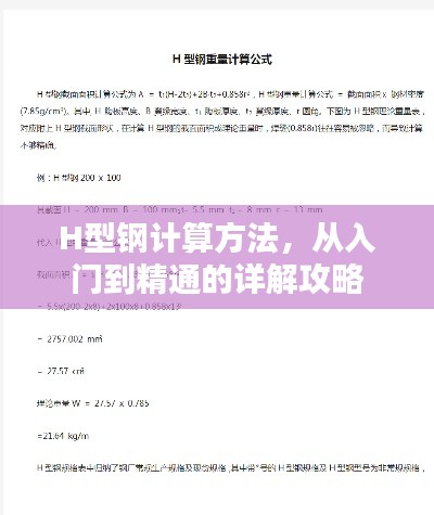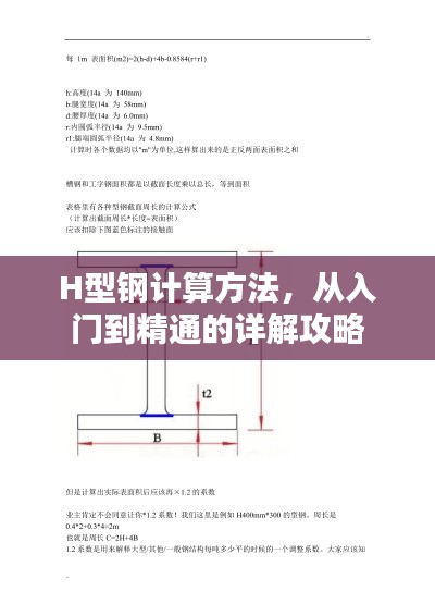 在开始探讨H型钢的计算方法之前,我们需要对H型钢有一个基本的了解,H型钢是一种具有经济断面、高效节能的钢材,其形状特点使得它在承载重量和稳定性方面具有优良表现,了解H型钢的规格、尺寸、材质等基础知识,有助于我们更好地进行后续的计算。