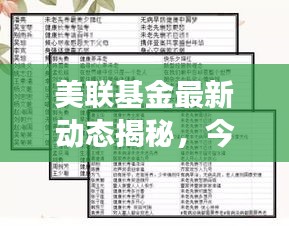 根据今日的最新消息,美联基金在市场表现方面持续亮眼,其管理的各类基金在不同领域均取得了不错的业绩,美联基金还积极调整投资策略,以适应当前市场变化。