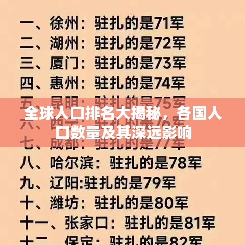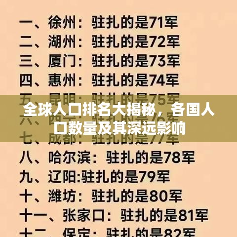 转载请注明来自武汉厨博士餐饮管理有限公司,本文标题:《全球人口排名大揭秘,各国人口数量及其深远影响》