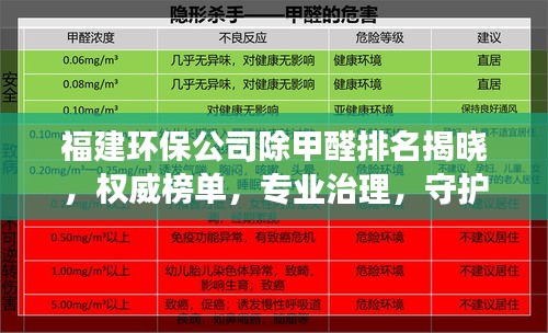 随着人们对健康生活的追求和对室内环境质量的关注,甲醛污染问题逐渐受到重视,在福建省,许多环保公司纷纷开展除甲醛业务,为消费者提供优质的服务,本文将介绍福建环保公司除甲醛的排名,以帮助消费者更好地了解并选择专业的服务。