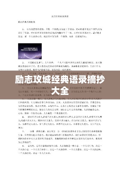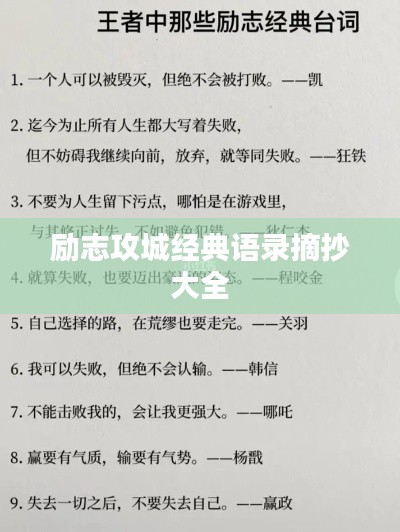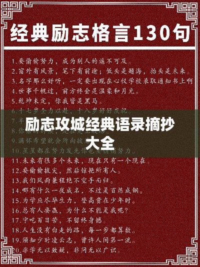 励志攻城语录,是一种鼓舞人心、激发潜力的言语,它们汇聚了智慧与力量,帮助我们在面对困境时坚定信念,勇往直前,这些语录通常简洁明了,富有感染力,能够激发人们的斗志。