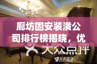 在廊坊固安的装潢公司中,有些公司因其卓越的设计能力、施工质量和良好的售后服务而脱颖而出,成为当地的顶级装潢公司,这些公司拥有一支专业的设计团队和经验丰富的施工队伍,能够为客户提供全方位的装潢服务,XXX公司便是其中的佼佼者,该公司注重细节处理,设计风格多样,能够满足不同客户的需求,该公司还注重施工质量的控制,确保每一个工程都能够达到客户的期望。