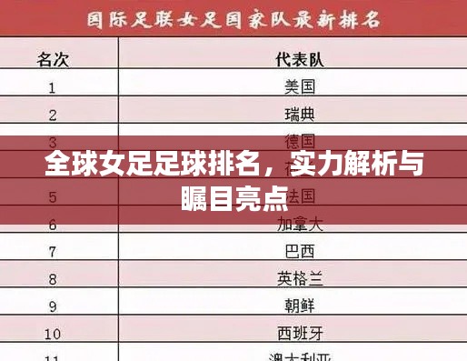 近年来,女子足球运动在全球范围内得到了越来越多的关注和支持,女子足球水平也在不断提高,各国女足队伍在世界范围内的竞争愈发激烈,排名也随之不断变化,本文将探讨女足足球排名世界的相关内容。