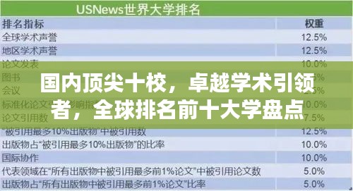 随着全球教育的不断发展和进步,我国的高等教育也取得了举世瞩目的成就,有一些大学以其卓越的教学质量、科研实力和学术影响力,跻身世界大学排名前列,本文将为您详细介绍国内世界排名前10的大学,这些大学在学术、科研、教学等方面均表现出色,是广大学生的理想求学之地。
