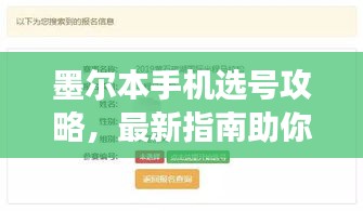 随着科技的进步和通信行业的发展,手机已经成为我们生活中不可或缺的一部分,在澳大利亚的墨尔本,选择一个合适的手机号码不仅关乎通信便利,也关乎个人喜好和特殊需求,本文将为您提供最新的墨尔本手机选号攻略,帮助您挑选到心仪的号码。