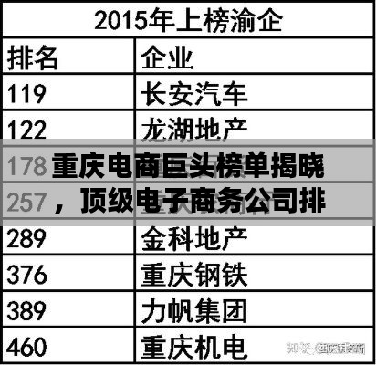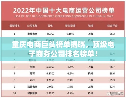 随着电子商务的飞速发展,重庆作为西部地区的经济中心,电子商务行业也取得了显著进步,本文将为您详细介绍重庆电子商务公司的排名榜,带您了解这些企业的实力与影响力。