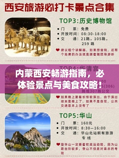 西安,这座古老而年轻的城市,是中华文明的发源地之一,历史与现代交织,古老的文化底蕴与现代都市风情相得益彰,而内蒙古,以其辽阔的草原、蓝天白云和丰富的民族文化,吸引着无数游客,本篇攻略将带你领略内蒙与西安的魅力。