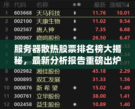 随着信息技术的飞速发展,服务器作为数据中心的核心设备,其性能与稳定性至关重要,而服务器的稳定运行离不开高效的散热技术,本文将围绕“服务器散热股票排名榜最新”这一主题,对服务器散热行业的现状、重要公司及其股票表现进行简要分析。