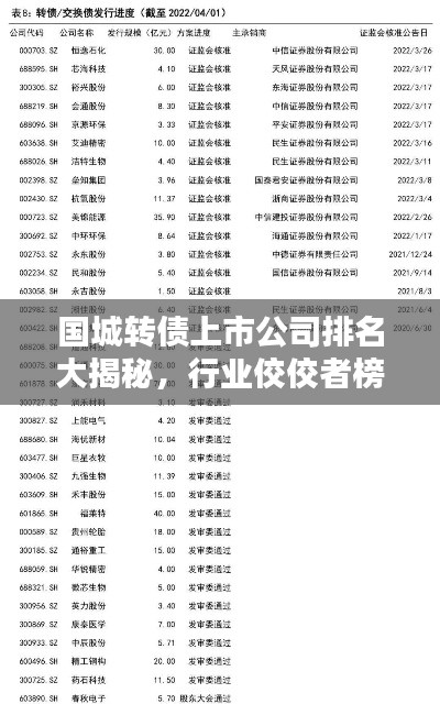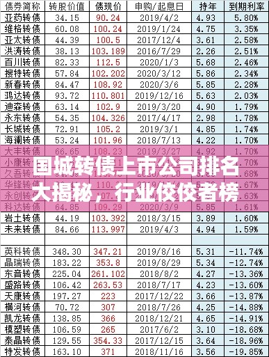随着金融市场的不断发展和壮大,可转债市场逐渐成为投资者关注的焦点,国城转债作为上市公司的一种重要融资手段,其市场规模逐年扩大,本文将深入探讨国城转债上市公司的排名情况,揭示哪些公司在这一领域表现出色,成为行业的佼佼者。