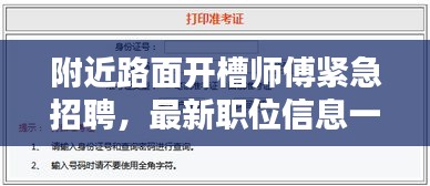 随着城市建设的不断发展,路面开槽施工日益受到重视,为满足市场需求,我们现面向社会广泛招聘经验丰富、技术精湛的路面开槽师傅,本次招聘信息旨在寻找热爱本职工作、敬业乐业的优秀人才,共同为城市基础设施建设贡献力量。