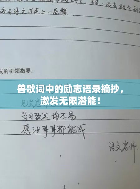 兽歌,一种充满力量与激情的音乐形式,它不仅仅是一种音乐,更是一种情感的宣泄和表达,兽歌中的歌词,往往充满了深刻的意境和强烈的情感,给人以启示和鼓舞,在这篇文章中,我们将从兽歌的歌词中摘抄出一些励志的语录,希望能给大家带来正能量和勇气。