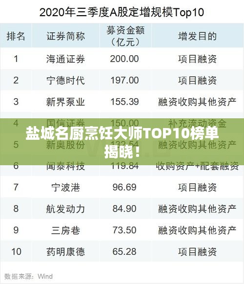 盐城,这座美丽的海滨城市,以其丰富的美食文化吸引着无数食客,在这座城市的各个角落,隐藏着许多烹饪高手,他们用心烹饪,将美食呈现给每一位食客,本文将为您介绍盐城名厨排名前十名,这些烹饪大师在盐城美食界占据重要地位。