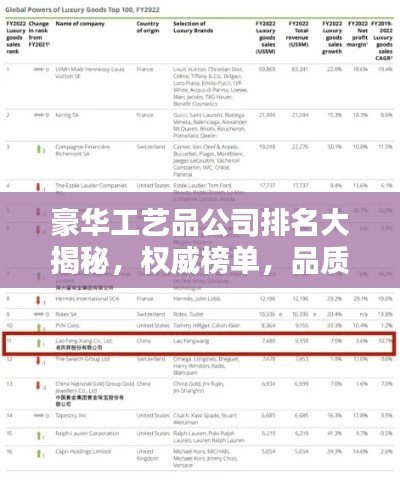 随着全球经济的发展和人们对生活品质追求的不断提高,豪华工艺品市场逐渐繁荣,各大公司凭借其精湛的工艺技术、独特的设计理念和卓越的产品质量,赢得了消费者的青睐,以下是当前全球豪华工艺品公司的排名,以及它们如何在激烈的市场竞争中脱颖而出。