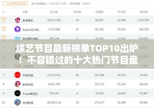 随着电视娱乐产业的飞速发展,各种类型的综艺节目如雨后春笋般涌现,本文将为您介绍当前最受欢迎的综艺节目排名前十,这些节目凭借其独特的创意、精彩的节目内容和明星嘉宾的魅力,吸引了众多观众的眼球。