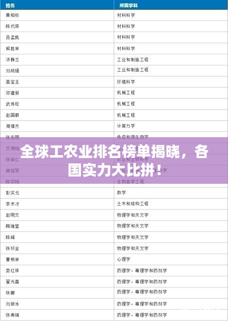 随着全球经济一体化的深入发展,各国工农业的发展水平逐渐显现出其国际竞争力,本文将根据最新数据,揭示世界各国工农业排名表,以了解各国在这一领域的实力和地位。