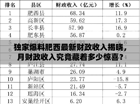 肥西县作为安徽省的重要经济区域,其经济发展一直备受关注,随着地方经济的持续增长,人们对于肥西县的财政收入情况愈发关注,本文将围绕“肥西最新财政收入多少钱一个月”这一问题展开,带您一探究竟。
