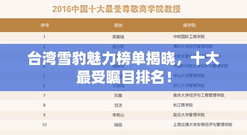 转载请注明来自武汉厨博士餐饮管理有限公司,本文标题:《台湾雪豹魅力榜单揭晓,十大最受瞩目排名!》