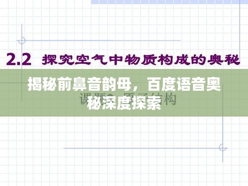 随着互联网的普及,搜索引擎已成为我们日常生活中不可或缺的一部分,在众多搜索引擎中,"百度"以其高效、准确的搜索服务赢得了广大用户的青睐。"百度一下"作为百度搜索引擎的标志性口号,其语音特征也引起了我们的关注,本文将聚焦于前鼻音韵母,带您一起探索其在"百度一下"中的奥妙。