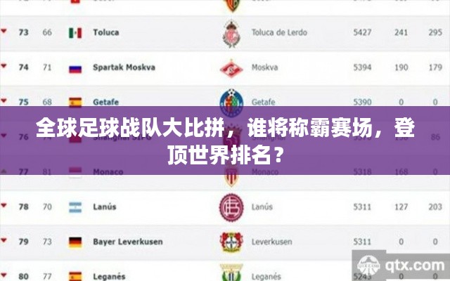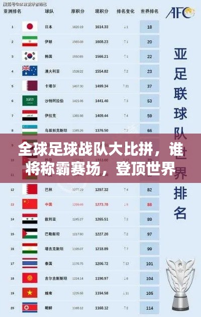足球是全球最受欢迎的体育项目之一,各国足球队的实力与表现备受关注,本文将根据最新的数据和信息,介绍世界足球组合排名,并分析哪些足球队和球员将成为全球赛场上的佼佼者。