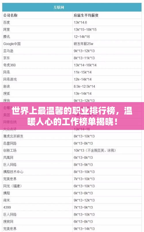 在这个充满爱的世界里,总有那么一些职业,以其特有的温暖和关怀,带给我们无尽的安慰与感动,我们就来聊聊“世界上最温馨的职业排名”,一起感受那些充满温情的工作岗位。