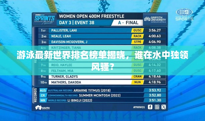 游泳,这项在水中进行的运动,不仅考验着运动员的体能和技巧,更展现着他们的意志和毅力,随着全球各地的游泳赛事接连不断,游泳世界排名也在不断变化,本文将为您带来游泳世界排名的最新情况,让我们看看谁在水中称霸。