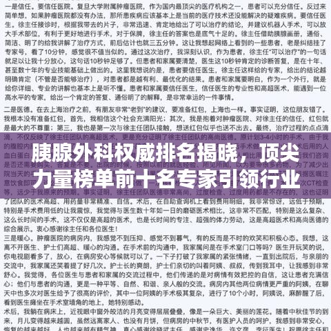 在医学领域,胰腺外科是一个重要的专业领域,胰腺疾病包括胰腺炎、胰腺肿瘤等,严重影响患者的健康和生活质量,胰腺外科在医疗体系中占据重要地位,本文将为您介绍胰腺外科排名前十名的专业机构,这些机构在胰腺疾病的治疗和研究方面处于行业领先地位。